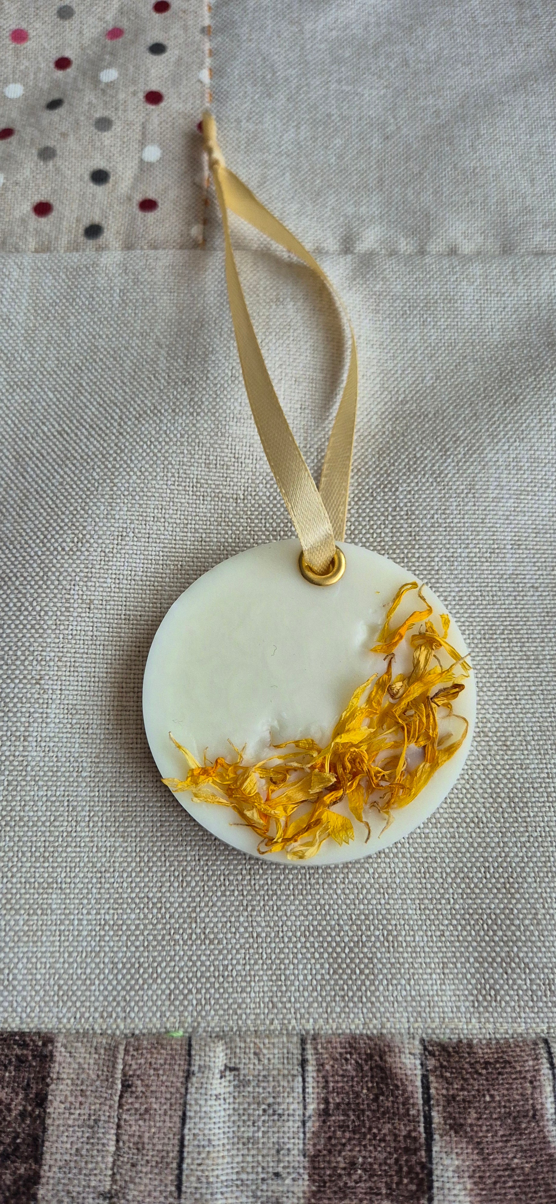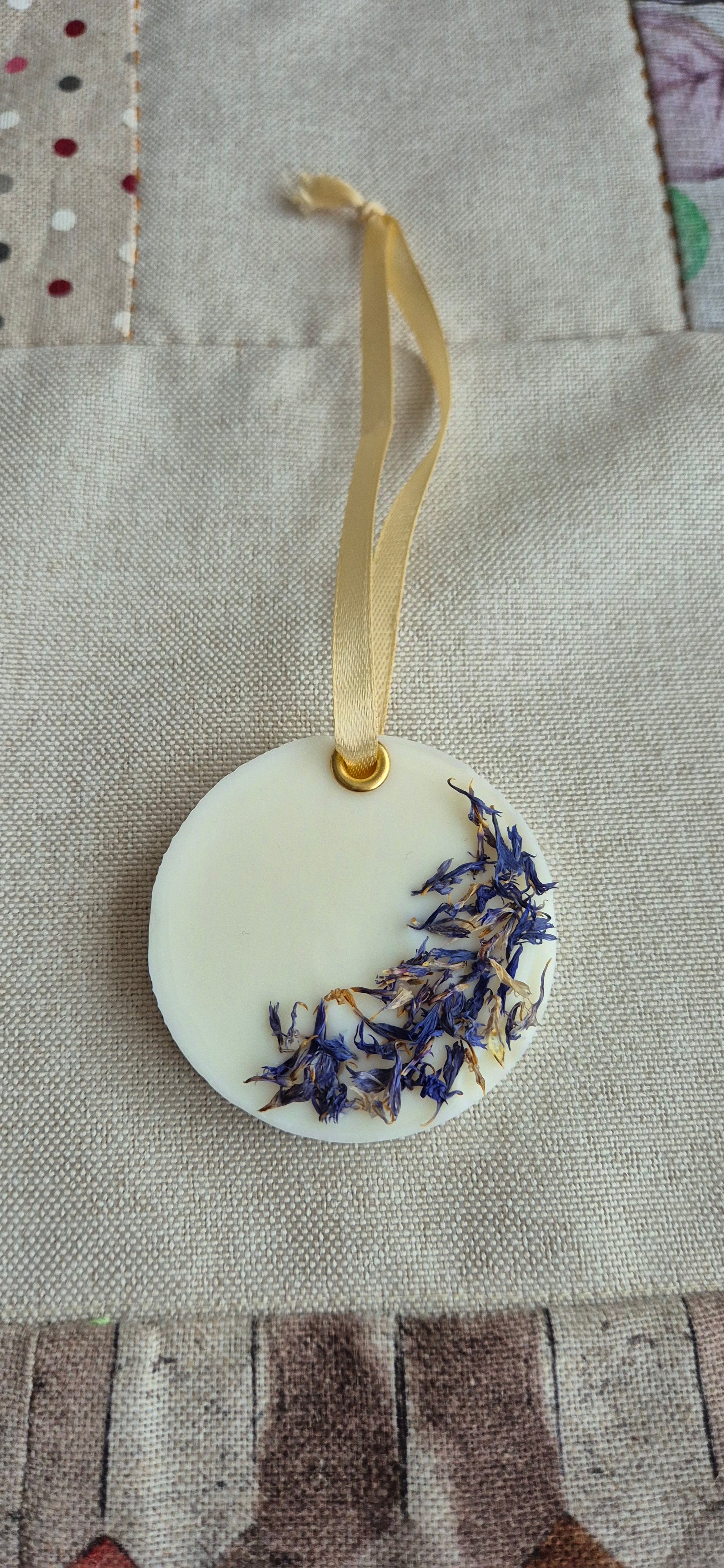 Nuestros Ambientadores Naturales Colgantes están elaborados con cera de soja y flores naturales cuidadosamente seleccionadas, creando una pieza única y artesanal para perfumar y decorar tus espacios. Cada colgante ofrece la posibilidad de personalizar su aroma, ideal para colocar en armarios, cajones, tiradores o puertas. Su diseño delicado y sostenible no solo aporta una fragancia agradable, sino también un toque decorativo natural y elegante.