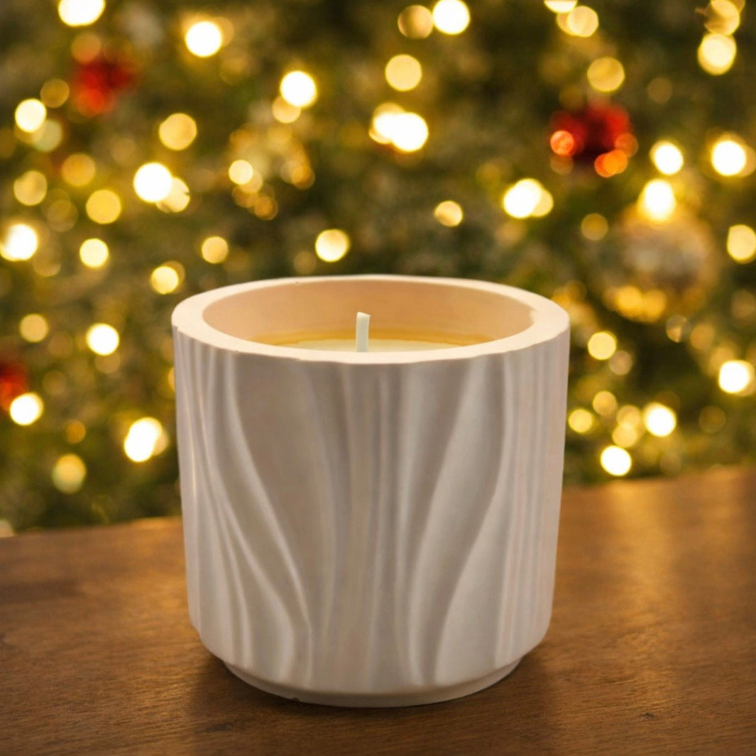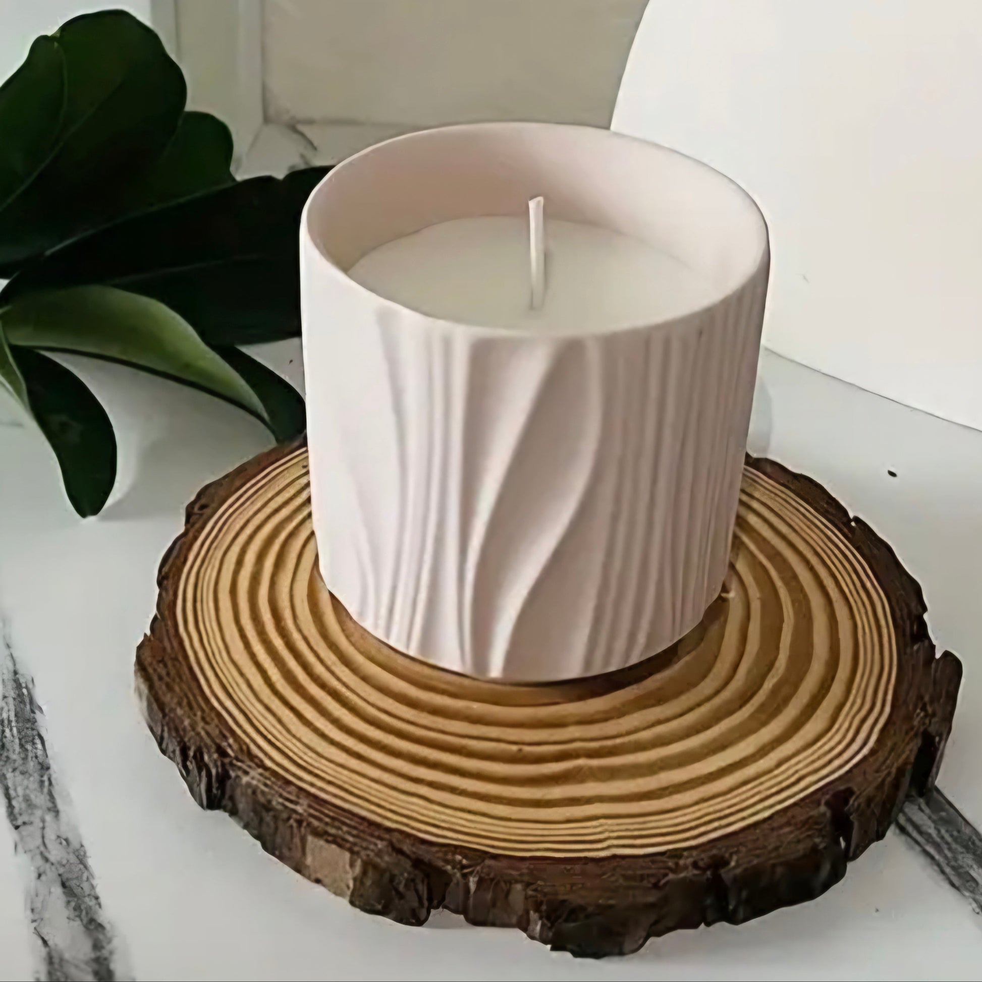 La Vela Brisa está diseñada para aportar calma y estilo a cualquier espacio. Elaborada con cera de soja 100% natural, se presenta en un recipiente de resina ecológica de color blanco, con un delicado relieve ondulado que evoca formas orgánicas y movimiento suave.